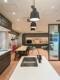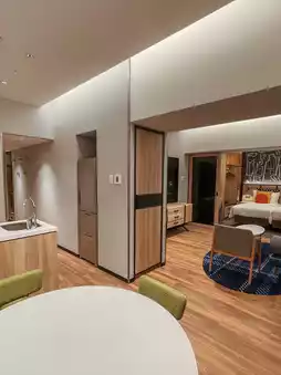 The hotel is equipped with a gym, laundry, kids' space, and even a residence lounge with a kitchen. ☺️