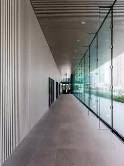 ▸ The waterfront glass walls create a rainbow-like halo that changes with the angle of sunlight.