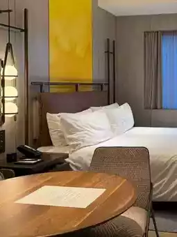 Compared to the InterContinental, the Osaka Voco Hotel has a younger, more relaxed atmosphere and a sophisticated design. The staff are more casual, lacking the cultural baggage of a historic hotel. Ice-cold lemonade is served upon entering the lobby. Upon entering the room, the bathroom is large, bright, and clean. The bed is also large and comfortable. The room features a neutral, bright color scheme and a nice design. The bed is comfortable, and the chair is nice. There's a refrigerator, coffee maker, iron, and safe.