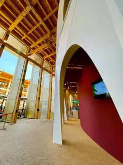 Turn right under the large roof ring.