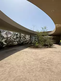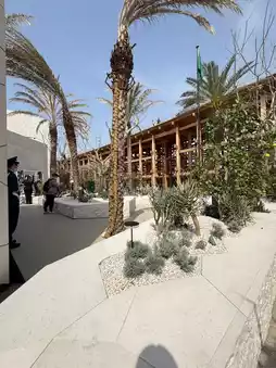 The irregular building shapes and the inorganic trees and grass were impressive. 🐪🌴