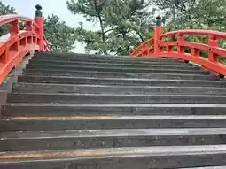 The high, arching bridge is a sobering place to cross. It's also recommended to take photos of the tram and the scenery of the ancient shrine from the bridge.