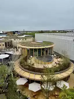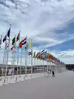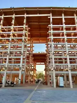 On busy days, the entrance is incredibly crowded, and there are lines for everything. At times like these, I enjoyed a leisurely stroll around the iconic large roof ring, viewing the pavilion's magnificent architecture from the roof ring, and enjoying Expo gourmet food from the food trucks.