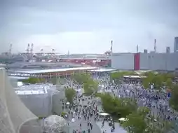 I was moved by everything I saw, not only the elaborate pavilion buildings, but also the cranes and buildings in the distance, and the ships sailing offshore.