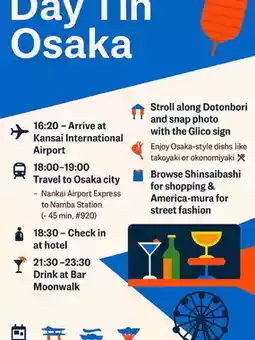 🚆 5:00 PM–6:00 PM Depart for the city (Nankai Airport Express → Namba)