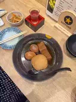 This izakaya is located a 9-minute walk from Osaka's Dotonbori. Its sign is hidden from the outside and its location on the second floor makes it a popular hidden gem. It's a popular spot for locals, with more locals than tourists, offering a variety of dishes like oden and onigiri. We recommend visiting in the evening for a light drink!