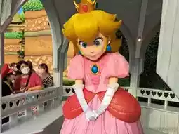 - With Mario, Luigi, and Princess Peach characters who appear for photo ops at specific times