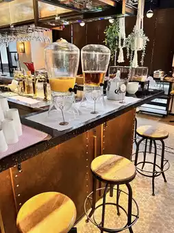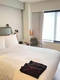 The hotel has 288 stylish guestrooms designed for both comfort and social interaction. Its communal spaces are front-and-center: the lobby is also the bar (“Bar Moxy”), there’s a Library Zone for quieter moments, a 24-hour fitness centre, free-fast WiFi, and other amenities typical of the Moxy brand.  It’s dog-friendly (with conditions: max weight ~15kg, 1 pet per room).