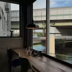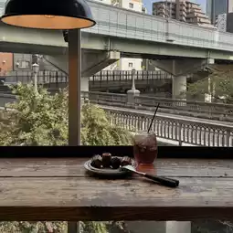 I discovered a unique blue three-story coffee shop nestled along the Osaka River in the northern part of Osaka!