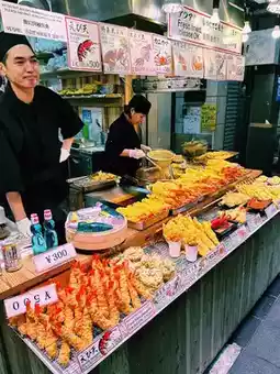 As we stroll through its lively aisles, we encounter enticing street food stalls serving local favorites like takoyaki (octopus balls) and okonomiyaki (savory pancakes).