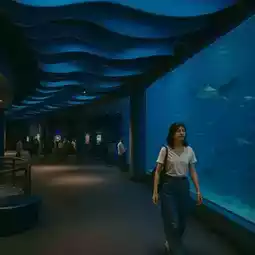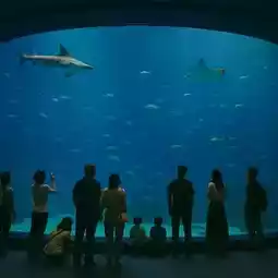 The Pacific Ocean tank is an enormous exhibit, approximately 9 meters deep and 34 meters wide, where you can witness whale sharks, hammerhead sharks, and manta rays swimming gracefully.