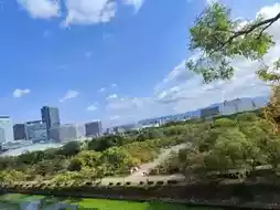 After having breakfast at the hotel, we took the subway to Tennoji Station. From there, it was a short walk to Osaka Castle Park. The park is free to enter, and as we stepped in, we were greeted by lush green pine trees. Since it wasn't the season for autumn leaves yet, the foliage was predominantly vibrant green, with only a few leaves starting to turn yellow.