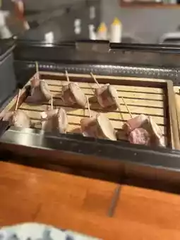 All skewers are perfectly grilled, bringing out the rich flavor of the ingredients. The sukiyaki roll is coated with a sweet and spicy sauce and egg yolk, while the shrimp and pork roll is perfectly tender and juicy.
