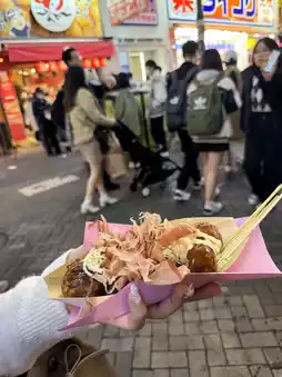Next up, takoyaki! You can't leave Osaka without trying some, right? 🐙