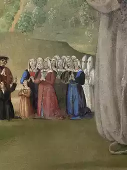 This masterpiece, painted for a procession for a religious community in Perugia, expresses deep faith and spirituality. The background features a meticulous recreation of the Perugian landscape of the time. 🏰