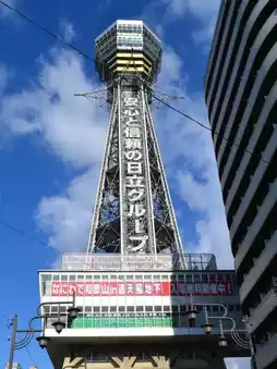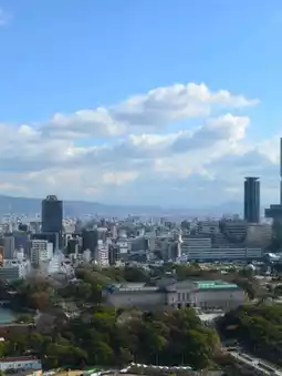From the observation deck of Tsutenkaku Tower, visitors can enjoy a panoramic view of Osaka's urban landscape. The densely packed buildings stretch out in an orderly fashion, showcasing the vitality of a modern metropolis. Landmarks such as the 300-meter-tall Abeno Harukas building are clearly visible. The streets and architecture of the Shinsekai district below retain a unique retro charm from the Showa era, creating a striking contrast with the modern high-rises in the distance. Patches of green parkland add vibrancy to the concrete jungle, together forming a multi-layered portrait of Osaka.