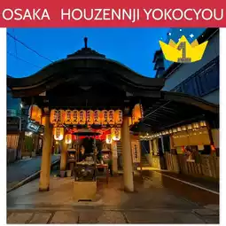 A narrow, lantern-lit alley leading to a moss-draped Fudo Myoo statue in Hozenji Temple, Shinsaibashi (near Nippombashi Station on the Sennichimae Line, tucked off Hozenji-dori).