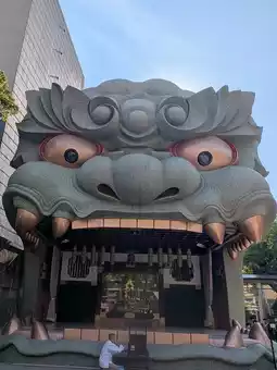 A shrine with a massive, beehive-shaped lion head structure you can walk through, at 2-9-19 Motomachi, Naniwa-ku (near Nippombashi Station on the Sakaisuji Line).