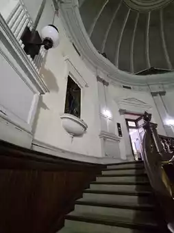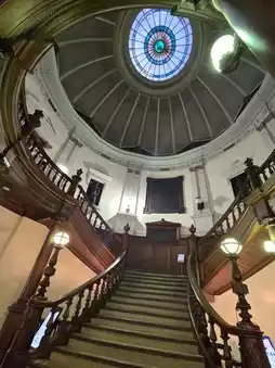 The beautifully curved circular dome, stained glass, and grand staircase, immediately visible upon entering, are full of romanticism and moving.