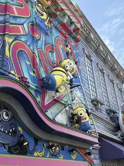 - Despicable Me: Minion Mayhem, a 4D ride where players "become a Minion" and embark on a wacky adventure with Gru and the Minion crew. The large 3D screens give the impression of movement, making it incredibly fun and entertaining. There's also a short wait time.