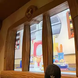 If you go down the stairs, you'll see the red mushroom's KINOPIO'S CAFE written on it