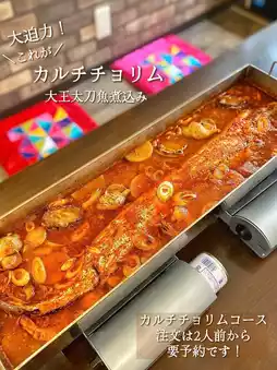 Very impressive! This special dish is made using two tabletop stoves and stewed in a long, specially made pot made in Korea. You can enjoy a large swordfish, seafood, and radish and potatoes soaked in plenty of broth together 👏🏻