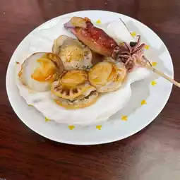 Butter grilled scallops are also a must! After choosing the price according to the size of the scallops, the site directly charcoal grilled, the process of adding butter sauce, hot and delicious. Thick, tender and juicy, the mixed aroma of salty and sweet is invincible.