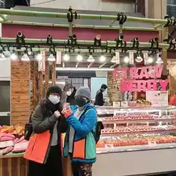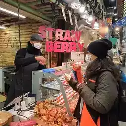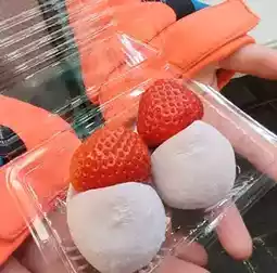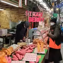 Kuromon Market is the kitchen of Osaka people, so after eating a lot of seafood, how can you not fill your stomach with dessert? There is a strawberry daifuku shop in the middle of the market. A fresh strawberry is wrapped in sweet red bean paste and chewy and slightly hard mochi. Let's have a winter strawberry daifuku~