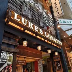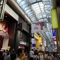 Let's go shopping here. Walk up from Shinsaibashi Station and walk along Shinsaibashi-Suji Shopping Street, a long, covered street. No matter what the weather is like, you can shop all the time. Of course, if you see Luke's Lobster, you have to order one set. It's enough for 2 people to eat and be full. Walk until you see a bridge over the canal. This area is called Dotonbori. The symbol is the Glico sign, which is where people come to take pictures. In this area, there is a Don Quijote in Dotonbori. We went shopping and rode their Ferris wheel.