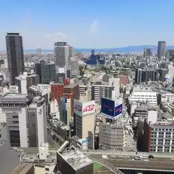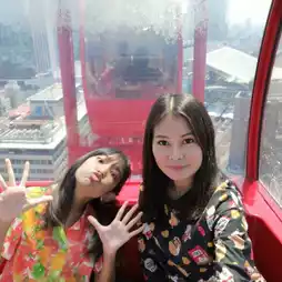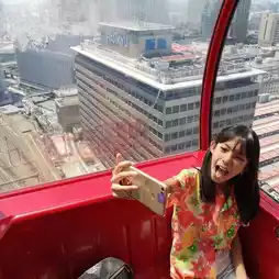Wow, the red Ferris wheel offers a view of Osaka. It is tall and the view is very beautiful. See Osaka slowly. It spins, takes pictures, and enjoys the view.