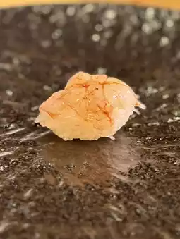 The lean bluefin tuna is rich in flavor, while the fatty cut melts in your mouth for a luxurious experience. The striped jack offers a delightful texture and refreshing taste, the red shrimp is sweet and memorable, and the herring roe provides a fun popping sensation. The crab miso is rich and creamy, and the whelk's umami flavor is perfectly balanced, making each bite a moment of bliss.