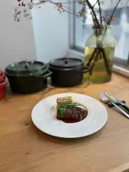 The seasonal new onion potage was impressively sweet and delicious. Both the appetizer and main dish were hearty and left me fully satisfied.