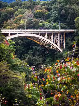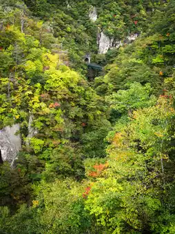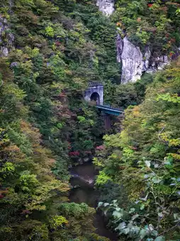 • Legendary views: Over 100-meter-high cliffs line both sides, with the golden yellow Onigawa Bridge cutting through the valley. This spot is frequently photographed on magazine covers.