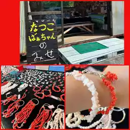 There were also souvenirs! I bought a lucky charm choker made from the spines of the sea urchin, which are said to be rare in the sea, carved by the mayor of the folk village☺️