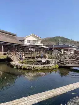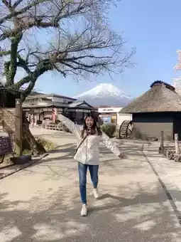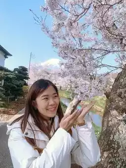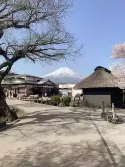 Today, let's change the atmosphere and travel to Japan together! Let's visit Oshino Hakkai Village, located in Yamanashi prefecture 📍. We traveled there by bus and got off right in front of the village. We came during April, when most cherry blossoms had fallen, but luckily there were still some left here. The weather was a bit chilly 🌸. The village is named after its clear water, and every pond is crystal clear with lots of fish swimming around. The path leading to the village is full of cherry blossom trees, some have fallen, but some still have beautiful blossoms. In some corners, we could even see Mount Fuji in the background with cherry blossoms in the foreground, it was truly beautiful. We arrived relatively early at around 8am, so there weren't many people and we could take pictures comfortably without feeling crowded. The weather was still cool in the morning, but as we finished walking around at around 11am, the sun started to get stronger and it became hot enough for us to take off our jackets. The place also started to get crowded with people.