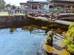 There are many tourists in every season, so it is recommended to start early in the morning to get photos without crowds. Among the eight ponds, only 'Sokonashi Pond' requires a ticket, while the others are free to visit. Among these eight ponds, 'Waku Pond' has the most abundant spring water and is the busiest central area, surrounded by many souvenir shops. Opposite it is a watermill, and the daily spring water volume is about 8.4 million liters. The water is extremely clear, and you can easily see the koi swimming in the crystal blue water. Each of the eight ponds has a different story. In the medieval period, this place was a spiritual training ground for Fuji ascetics, and the eight ponds are based on the teachings of the Lotus Sutra, dedicated to the Eight Dragon Kings, which is quite unique.
