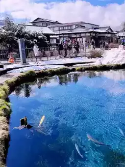 Located in Oshino Village, Yamanashi Prefecture, Japan, Oshino Hakkai is a well-known tourist attraction consisting of eight ponds, including Deguchi Pond, Okama Pond, Ditetsu Pond, Choshi Pond, Okui Pond, Turbid Pond, Mirror Pond, and Acorus Pond. Most of the ponds are filled with underground springs gushing out from the melted snow of Mount Fuji. The water is pure and clear. There are many trouts swimming leisurely in the ponds. There are fish feeds sold in nearby businesses, and children can come here to feed the fish. Every trout is very healthy and beautiful, which is very suitable for people like me who like to watch the fish swim leisurely. But be careful not to throw coins into the pond, as this is harmful to the fish, even if there are many coins in the pond that are visible to the naked eye.