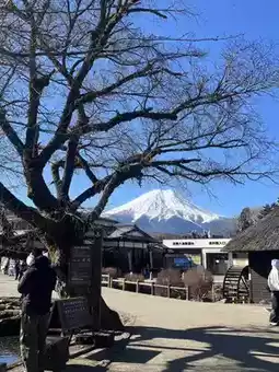 From within the village, you can get a clear view of Mount Fuji, with the majestic mountain towering in the background. On a clear day, you can see Fuji clearly and beautifully. Combined with the village's traditional Japanese atmosphere, it's truly breathtaking! The vibe is simply breathtaking.