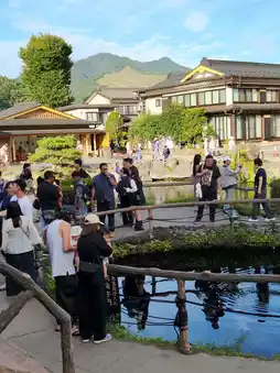 Oshino Hakkai is a wonderful relaxing spot at the foot of Mount Fuji. It's famous for its eight crystal-clear natural springs, each with a shimmering, shimmering water. One of its highlights is the spacious fish pond, where colorful koi swim leisurely, a delightful delight for children. 🥳🥳🥳