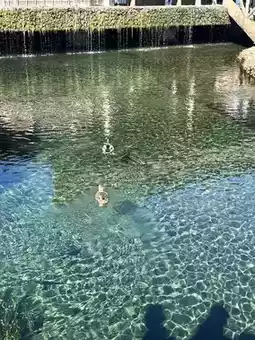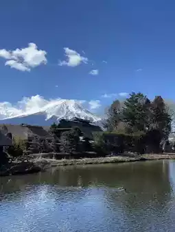 Peering into the pond, you can clearly see the bottom! ✨ The combination of the clear blue water, the carp, and Mt. Fuji towering in the background is truly breathtaking.