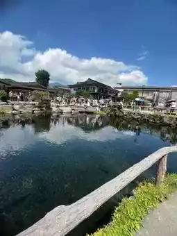 Oshino Hakkai is breathtakingly beautiful! It feels like stepping into a ninja village straight out of a TV show, surrounded by traditional wooden houses, lush greenery, and crystal-clear spring water. The ponds here are among Japan's "Top 100 Famous Waters," and it's said that drinking the water can promote longevity—no wonder everyone is eager to take a sip.✨