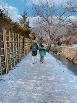 We went for a walk on a weekend morning at the end of January. It just happened to be the first snowfall, and everywhere was truly breathtakingly beautiful. It was beautiful even when taking photos. The lake water is indeed very clear, so clear that you can see the bottom. Then we ate some snacks while walking, such as meatballs, grilled corn, grilled grass cakes, ice cream of different flavors, etc. The children were not hungry, so they did not go into the restaurant, but they saw udon, which seemed delicious. Also, check out the souvenir shop for local specialties such as Yamanashi honey, and there are also bags of local village udon available for purchase.