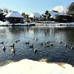 The 8 depressions formed by the eruption of Mount Fuji changed the landform. After the snow melted, springs emerged into 8 ponds, including Deguchi Pond, Okama Pond, Botsu Pond, Choshi Pond, Oki Pond, Turbid Pond, Kagami Pond, and Acorus Pond, becoming the most distinctive cultural heritage of Oshino Village. Later, villagers also dug artificial pools such as Zhongchi and diverted mountain spring water for tourists to drink.