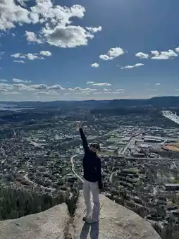 Next, I headed to the Aker Brygge waterfront, a stylish harbor district perfect for brunch with a view. I grabbed a cinnamon bun and coffee at Baker Hansen, then walked the boardwalk to the Oslo Opera House. Its sloped roof doubles as a viewpoint—walk up for a panoramic sweep of the Oslofjord and city skyline.