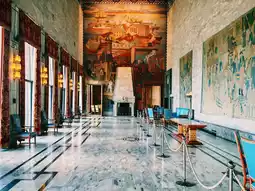 Oslo Rådhus, or Oslo City Hall, is renowned for its striking architecture and vibrant murals. It serves as the administrative center of Oslo and is famous for hosting the Nobel Peace Prize ceremony. Visitors can explore the grand halls adorned with beautiful artworks that depict Norwegian history and culture. The building's unique design, characterized by its two towering towers, is a prominent feature of Oslo's skyline. Free guided tours offer fascinating insights into the city's governance and artistic heritage, making it a must-see for locals and tourists alike.