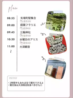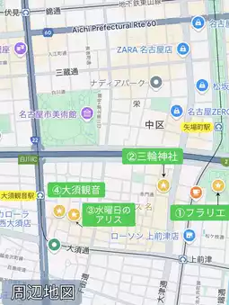 Just copy it and you'll have the best outing plan completed without spending money or time! Great for dates, with kids, alone, and anyone! Includes a walkthrough map! ‥‥‥‥‥‥‥‥‥‥‥‥‥‥‥‥‥‥‥‥‥‥‥‥‥‥‥‥‥‥‥‥‥‥ ☑︎Time of stay and route①Hisaya Odori Garden Flarie 30 minutes↓🚶8 minutes②Miwa Shrine 30 minutes↓🚶9 minutes③Wednesday Alice 15 minutes↓🚶4 minutes④Osu Kannon 15 minutes ※Time of stay is just a guidelineYou can shorten it or take it slower, it's up to you♡‥‥‥‥‥‥‥‥‥‥‥‥‥‥‥‥‥‥‥‥‥‥‥‥‥‥‥‥‥‥‥‥‥ ☑︎Highly recommended points・No need for a car・Everything is on foot・All admission fees are free・Enjoy it in less than half a day・Eat your way around the shopping district during and after sightseeing◎・Safe for children! Enjoyable... 📍①Hisaya Odori Garden Flarie 4-4-1 Osu, Naka-ku, Nagoya, Aichi 05224305119:00 - 22:30 Free entry 3-minute walk from Exit 4 of Yabacho Station on the Meijo Line 5-minute walk from Exit 1 of Kamimaezu Station on the Meijo Line and Tsurumai Line Parking for 18 cars All day 30 minutes (08:00 - 22:00) 200 yen All day 60 minutes (22:00 - 08:00) 100 yen 🌿Free with this quality and size?! A healing garden in the middle of the city... 📍②Miwa Shrine