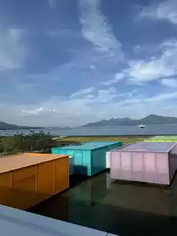 Each of these cube boxes floating in the Seto Inland Sea is an exhibition room,