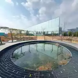The oval-shaped main hall resembles a giant mushroom, with its mirrored exterior walls reflecting the sea and sky, perfectly enveloping the natural scenery. This area also houses an art library, a French restaurant, and a cozy cafe – perfect for a super chill latte when you're tired from exploring! ☕📚