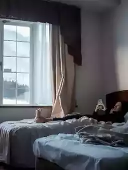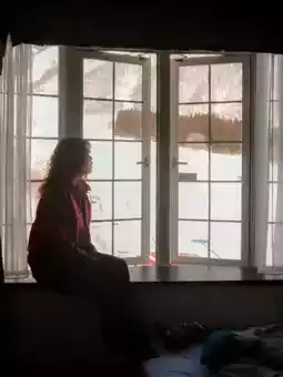The snowy mountains (slope) could be seen from the room, which was a spectacular sight.