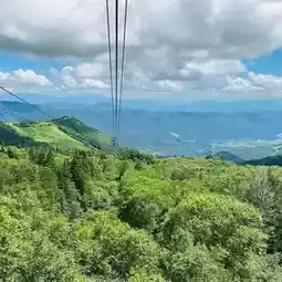 The first is a small cable car like the Jiu Zu Cable Car. Because there are few tourists, our family can take a car by ourselves. It takes about 20 minutes, and then we walk a short distance to change to a large cable car and continue to ride for about 7 minutes. Tsugaike's Gondola box cable car (large cable car) is 4,120 meters long and is one of the longest cable car lines in Japan. There were staff members on the large cable car giving explanations. Although they were speaking Japanese and I couldn't understand them, I knew they were explaining the ecology of nearby plants. The most special thing was the many purple cones on the treetops. I checked and it should be the purple cones of fir.